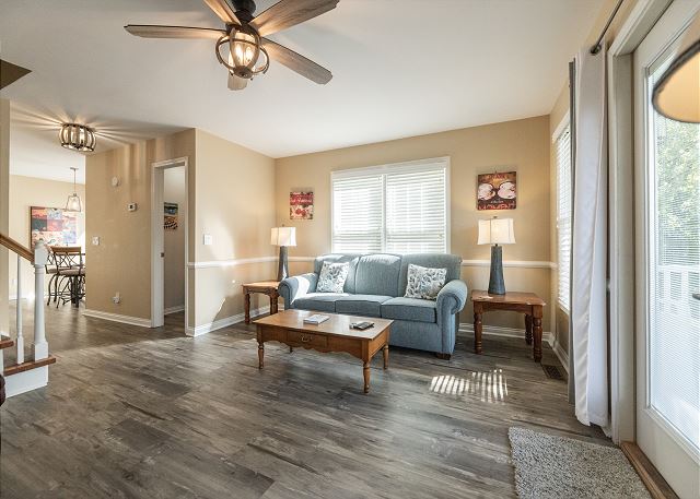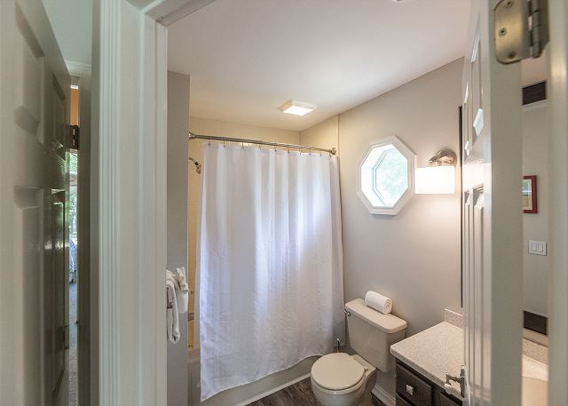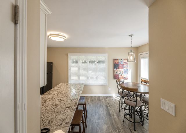 Enjoy the comforts of home in this recently updated two-bedroom condo, perfectly situated above the harbor with decks on both levels. Upstairs, the master bedroom features a brand-new screened-in porch, ideal for relaxing with a view, while the spacious living room downstairs offers a cozy gas fireplace for cooler evenings. Both bedrooms are located upstairs, each with a king-size bed and private bath, and the living room includes a pull-out sofa for additional sleeping space. The back deck is equipped with a gas grill, making outdoor dining a breeze. Entertainment options include two TVs with local cable. Located in the heart of Green Turtle Bay, you’ll be just steps from the outdoor pool, tennis courts, spa, and playground, and within walking distance of the ship’s chandlery and boat docks. This is a non-smoking, no-pet unit.