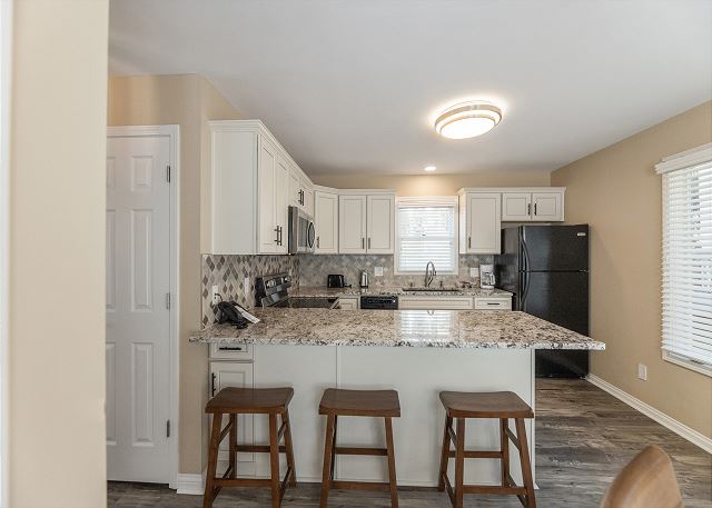 Full-Size Kitchen, Refrigerator, Coffee Maker, Ice Maker, Microwave, Toaster, Cookware, Dishwasher, Dishes/Utensils, Trash Compactor, Small Appliances