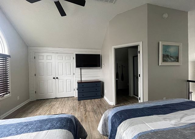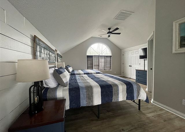 1 king bed, 1 queen bed, 1 sleeper sofa