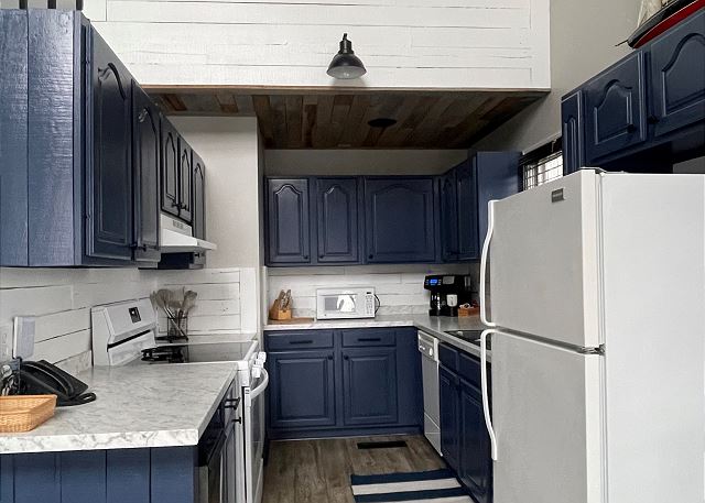 Full-Size Kitchen, Refrigerator, Coffee Maker, Ice Maker, Microwave, Toaster, Cookware, Dishwasher, Dishes/Utensils, Trash Compactor, Small Appliances