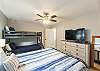 1 king bed, 1 queen bed, 1 sleeper sofa, 1 bunk bed