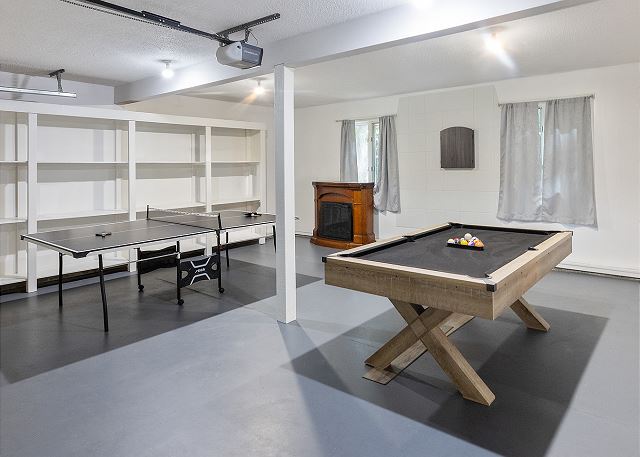 Ping Pong Table, Pool Table, Television, Air Conditioning, Clothes Dryer, Fireplace, Garage, Hair Dryer, Heating, Internet, Iron & Board, Linens Provided, Living Room, Parking, Telephone, Towels Provided, Washing Machine, Coffee Maker, Dishes & Utensils, Dishwasher, Ice Maker, Kitchen, Microwave, Oven, Refrigerator, Stove, Toaster, Dining Table, Kitchen Island, bird watching, walking, ATM/bank, groceries, massage therapist