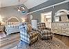 Newly renovated and featuring a brand-new game room, this spacious three-bedroom, 2.5-bath suite (2 private bedrooms and 1 open loft) offers comfort, style, and entertainment for the perfect getaway. The living room and master bedroom both feature cozy fireplaces, while the master bath includes a stand-up shower and soaking tub. Sleeping arrangements include a king bed in the downstairs master, a queen bed in the upstairs bedroom, and both a queen and a twin in the upstairs loft. The open kitchen and living room provide plenty of space for gathering (note: no pullout sofa), with additional seating in the upstairs lounge. With a connecting two-car garage, four flat-screen TVs, and all the comforts of home, this non-smoking, no-pet unit is designed for convenience and relaxation. Just a short walk to the spa and indoor pool, guests can also enjoy the newly added game room—complete with ping pong, pool, and darts—making it the perfect spot for family getaways or business retreats that balance work and play.